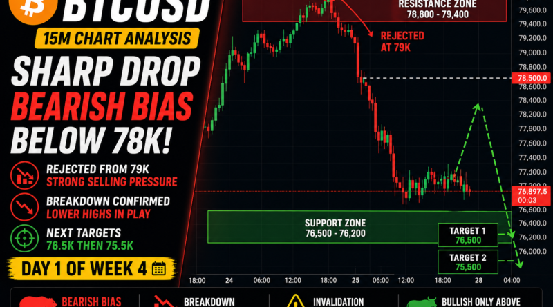 BTCUSD Analysis Today: Bitcoin Drops from 79K, Bearish Bias Below 78K | Next Move Toward 75.5K?