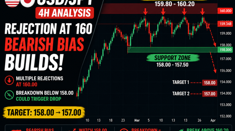 USD/JPY Forecast: Rejection at 160 Signals Potential Drop Toward 158 | Bearish Bias Builds
